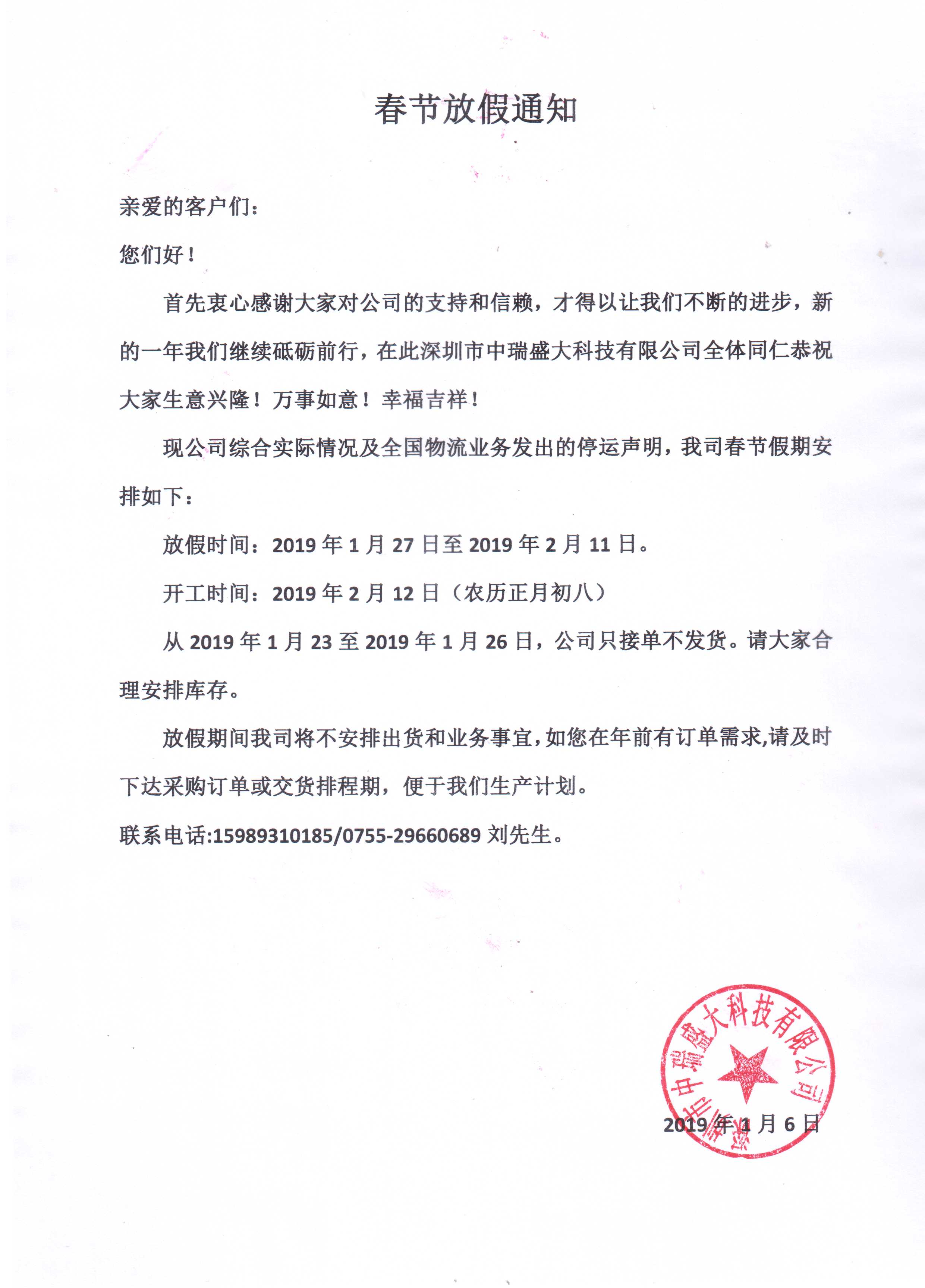 2019春節(jié)放假通知